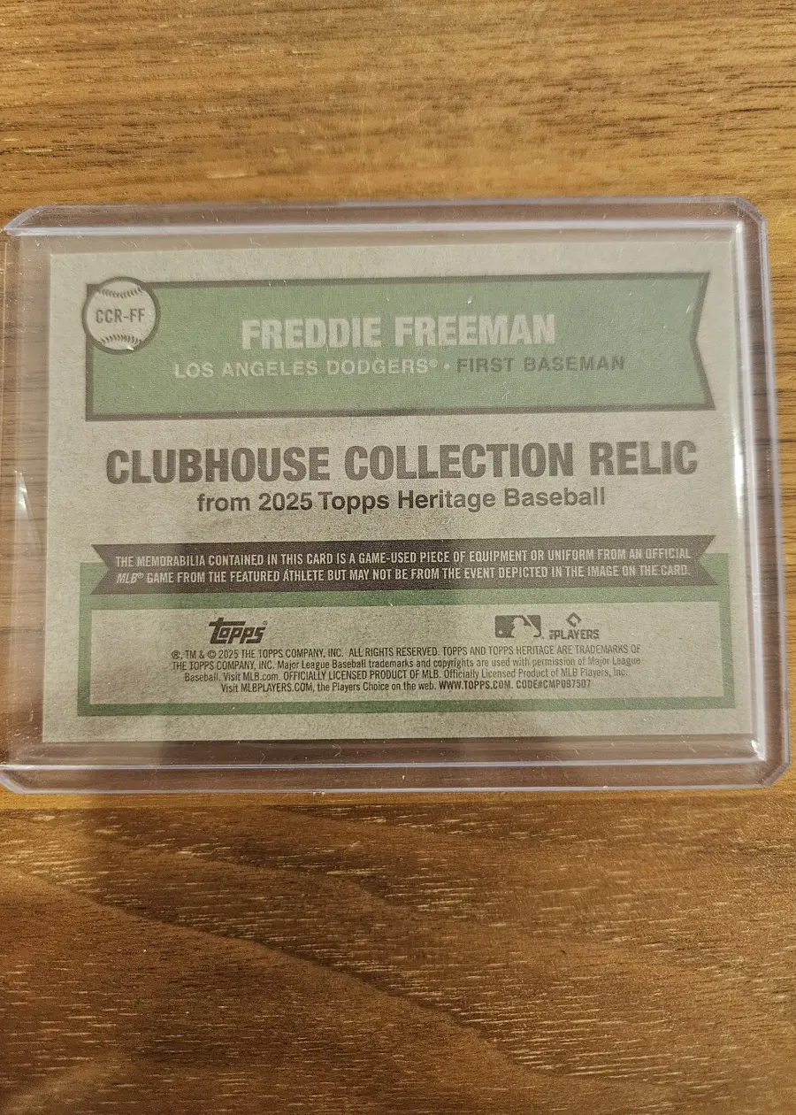 2025 Topps Heritage #CCR-FF Freddie Freeman Clubhouse Collection Game Used Relic