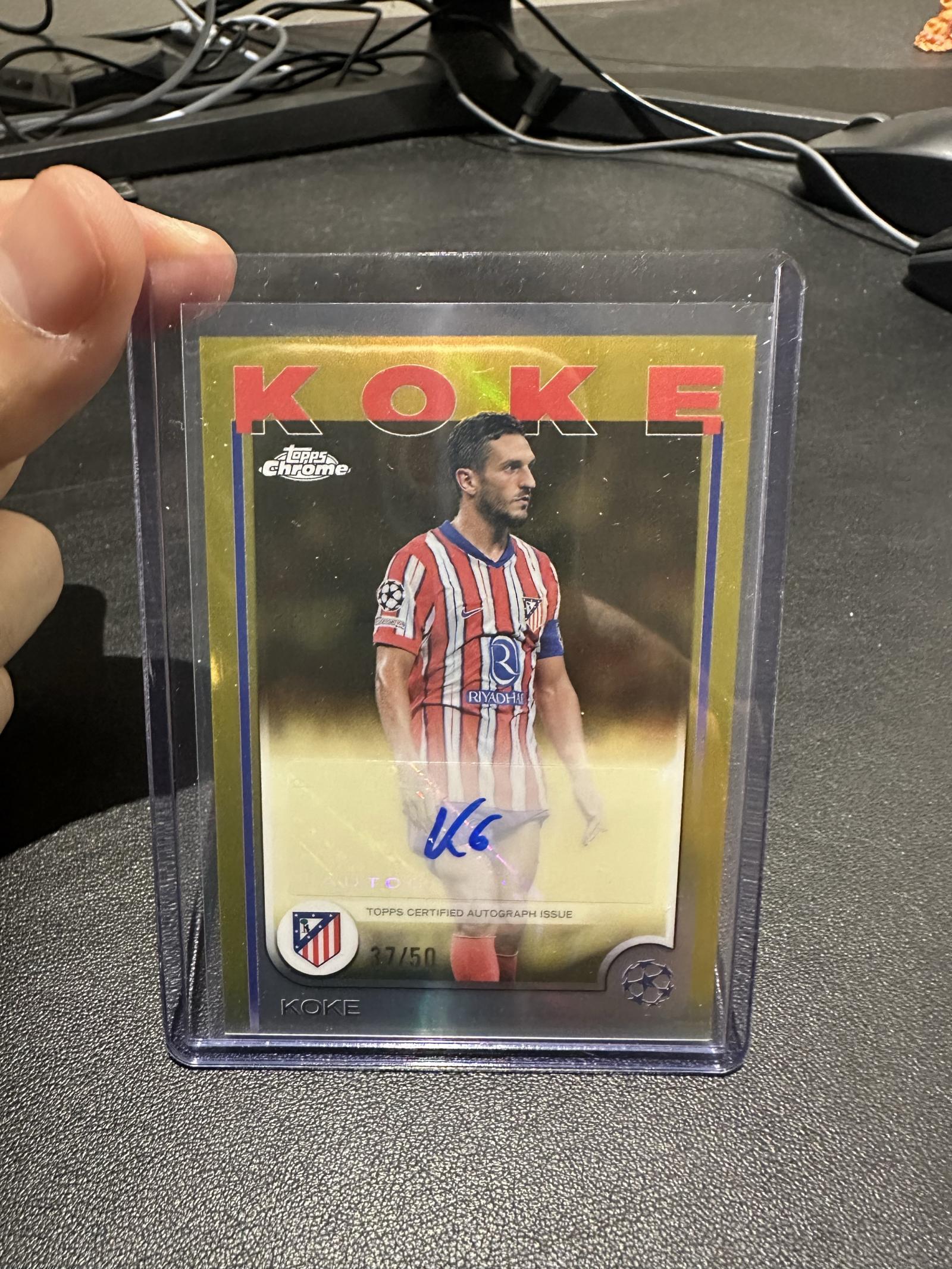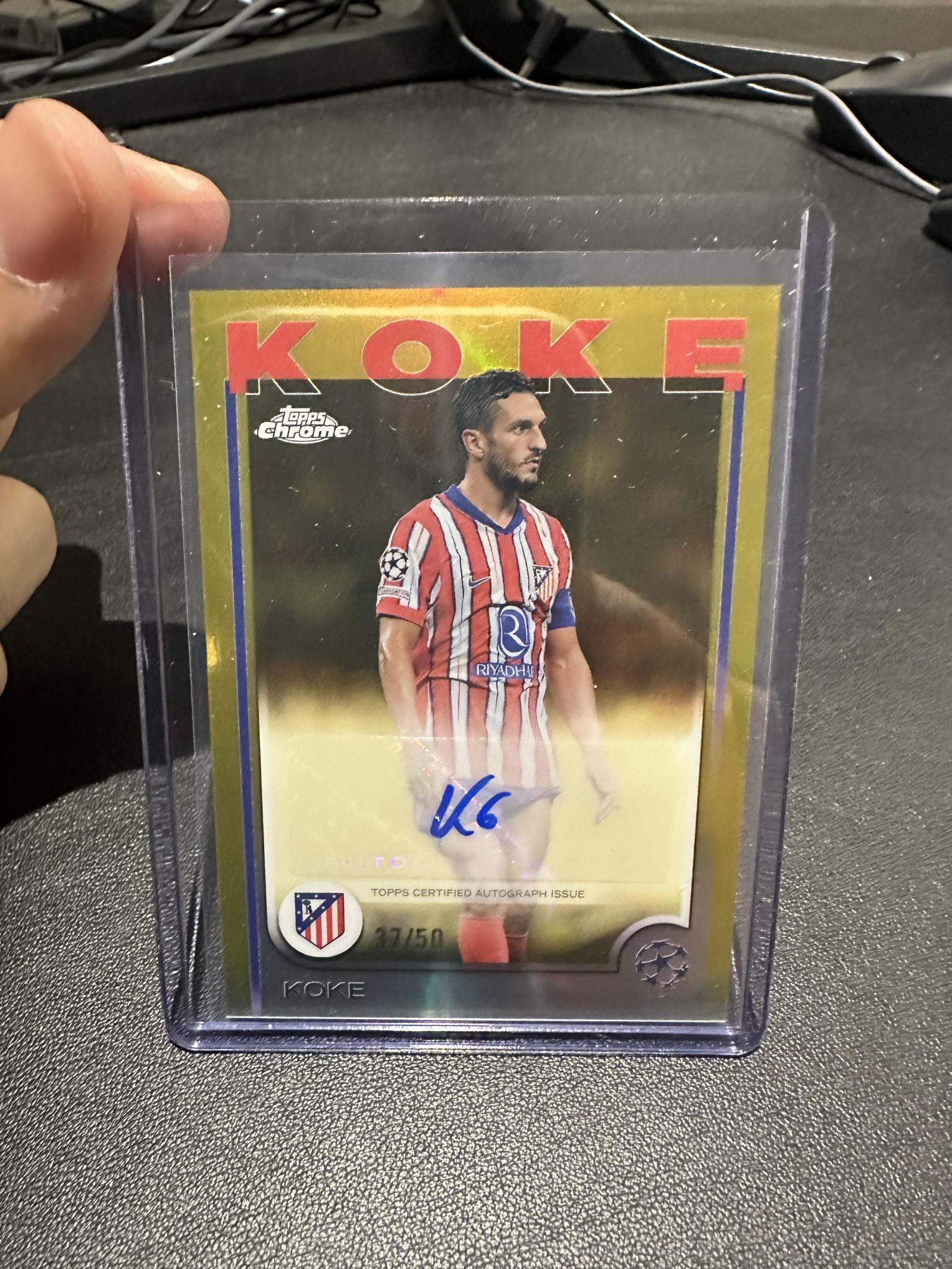 Collectible value & playability: This is primarily a collector’s item rather than a playable/trade piece for fantasy or tabletop use. Koke is a long-tenured Atlético Madrid captain, and numbered autographs from Topps Chrome typically attract interest from collectors of modern European club stars and autograph parity sets. The low print-run (#27/50) increases scarcity and resale interest, and the card is a good candidate for third-party grading if a buyer wants a certified numeric grade.