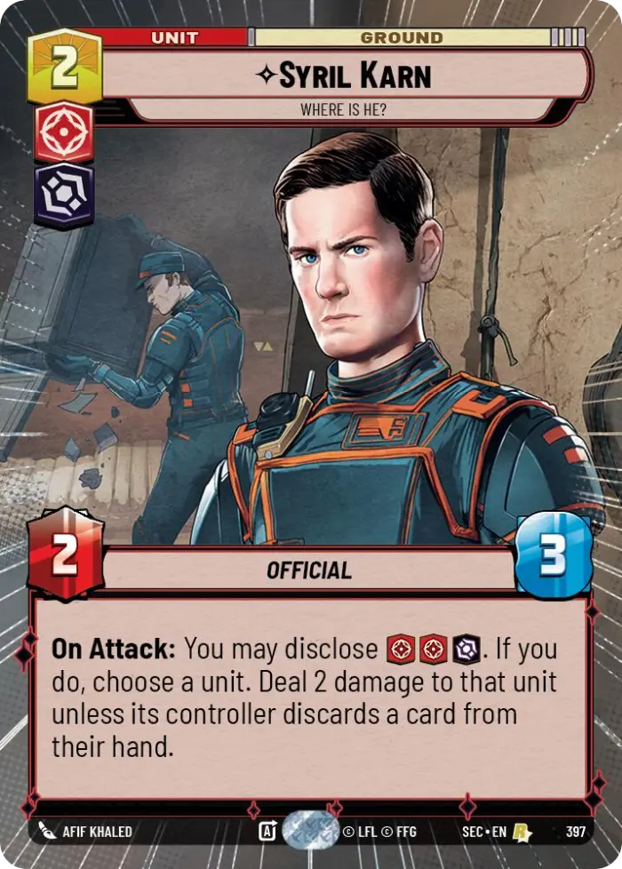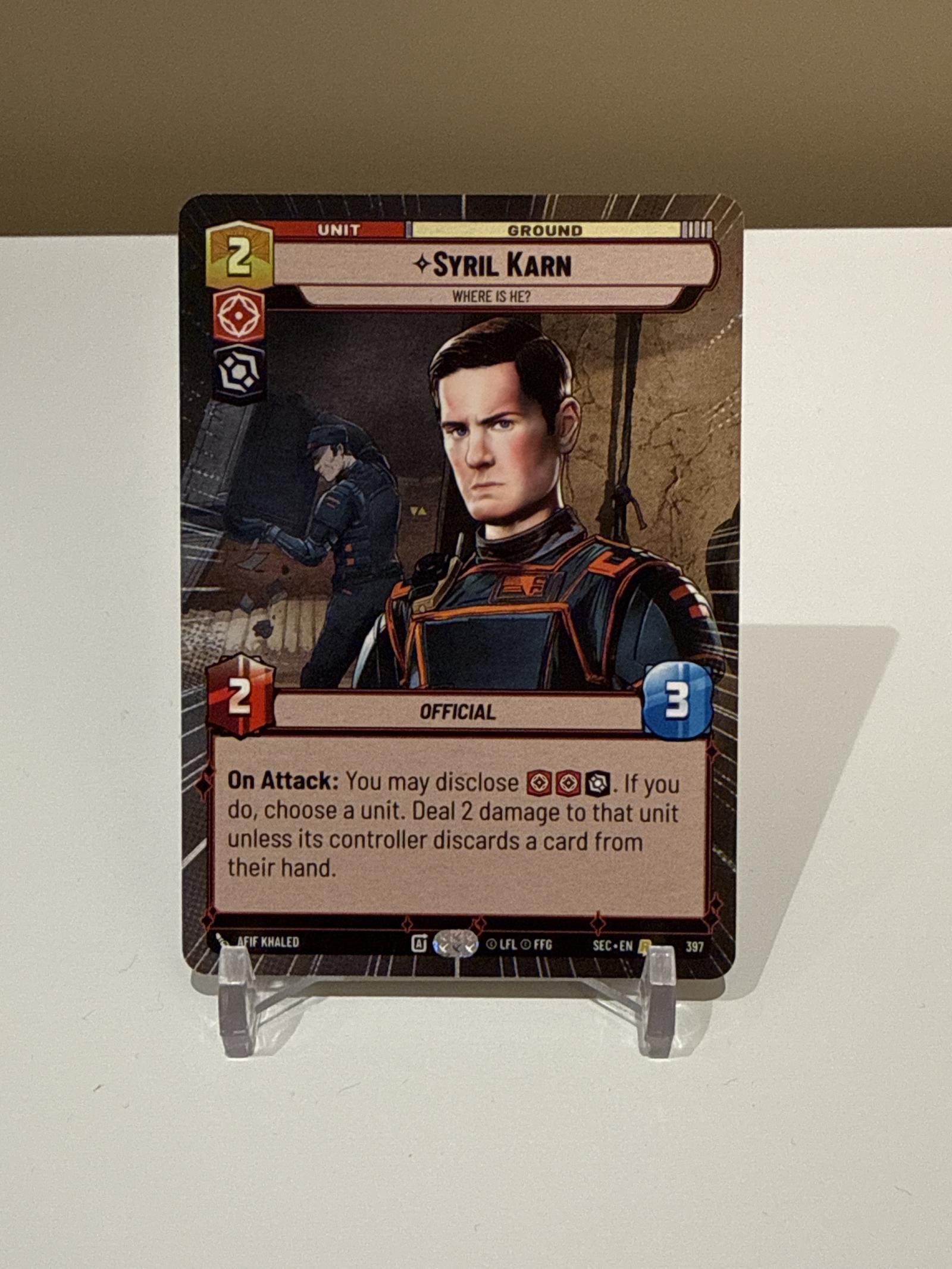 Star Wars Unlimited Syril Karn Official Unit Card #397