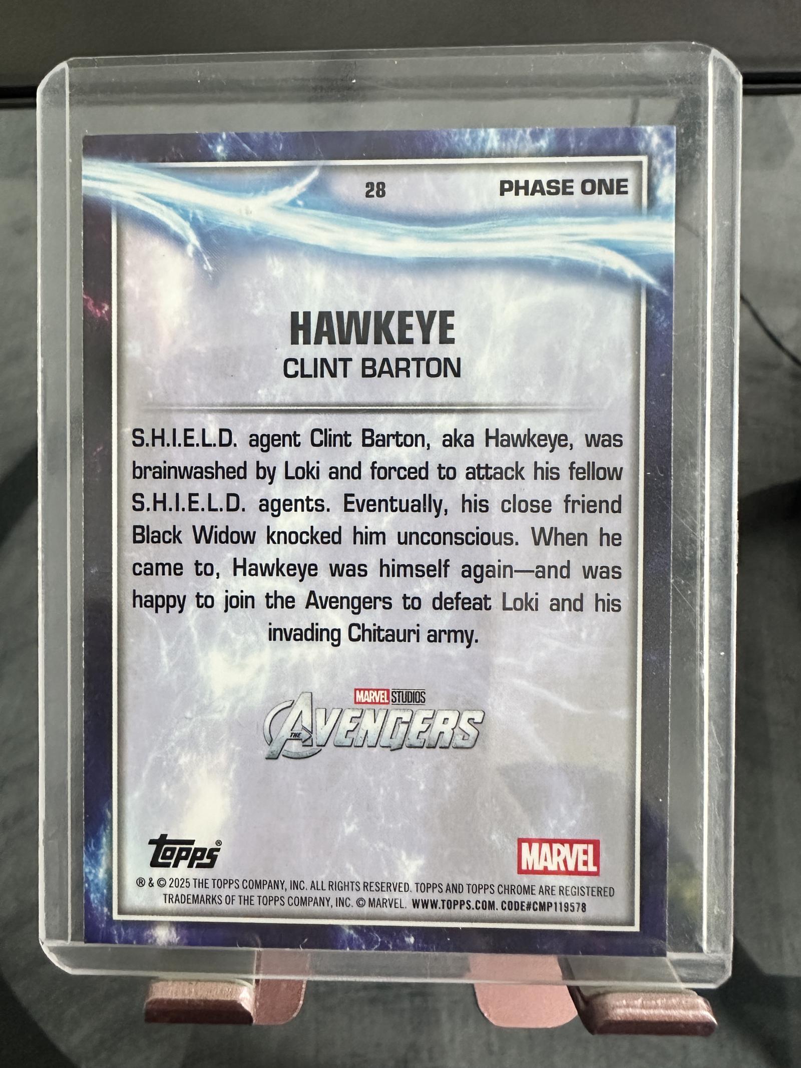 2025 Topps Chrome Marvel Avengers Hawkeye Clint Barton Collectible Card