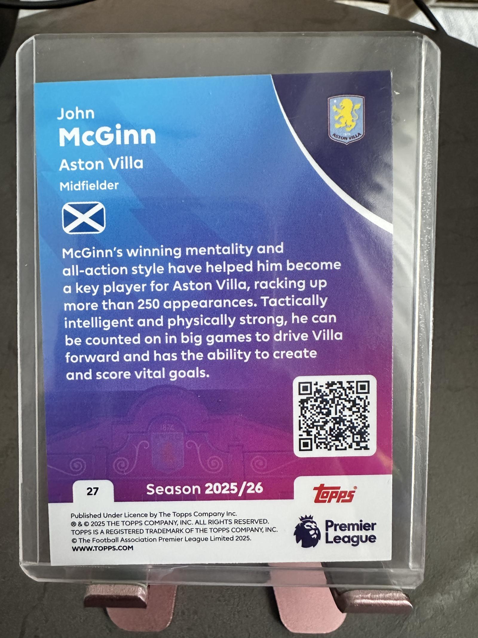 2025/26 Topps Premier League John McGinn Aston Villa Midfielder Card #27