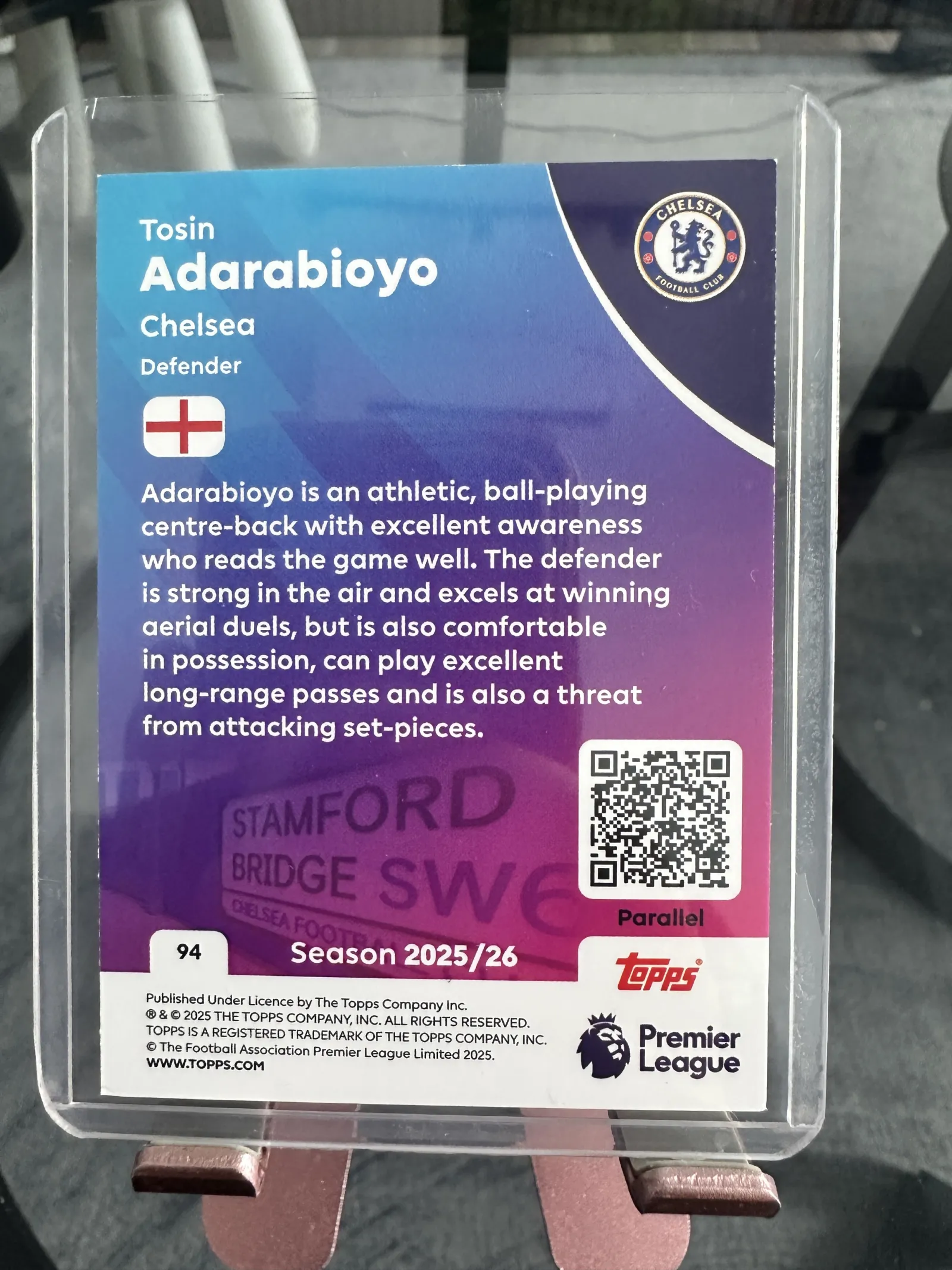2025/26 Topps Premier League Tosin Adarabioyo Chelsea Defender Parallel Card #94