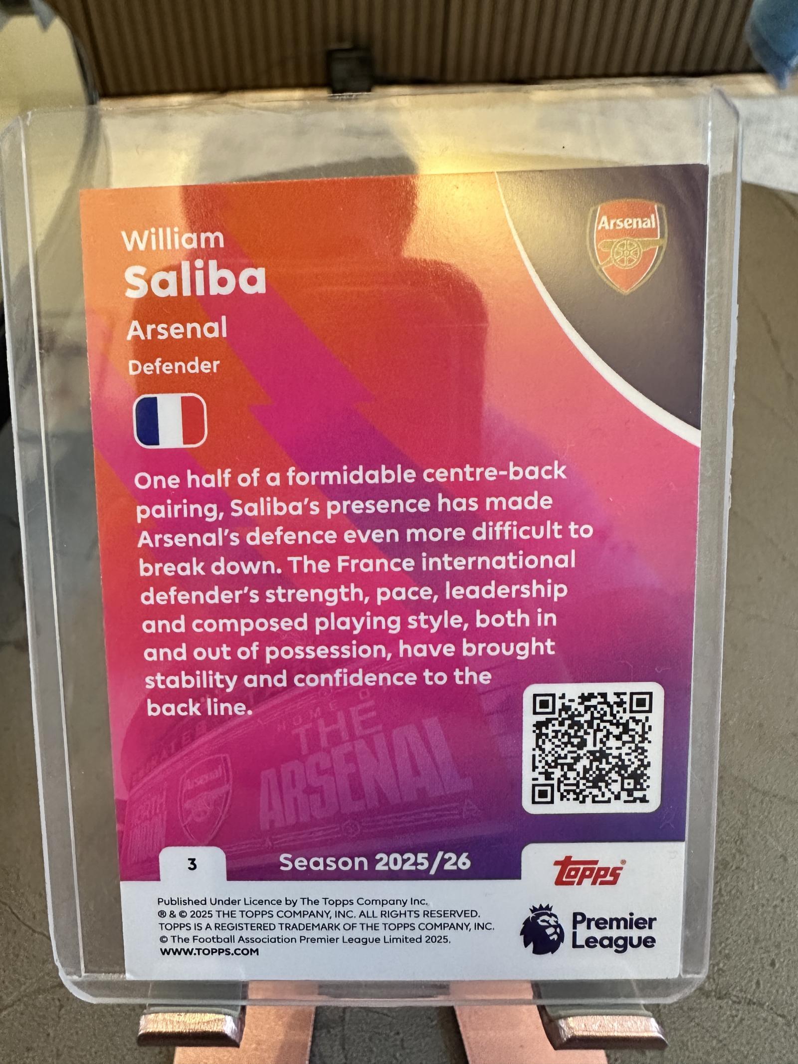 2025/26 Topps Premier League William Saliba Arsenal Defender Card #3