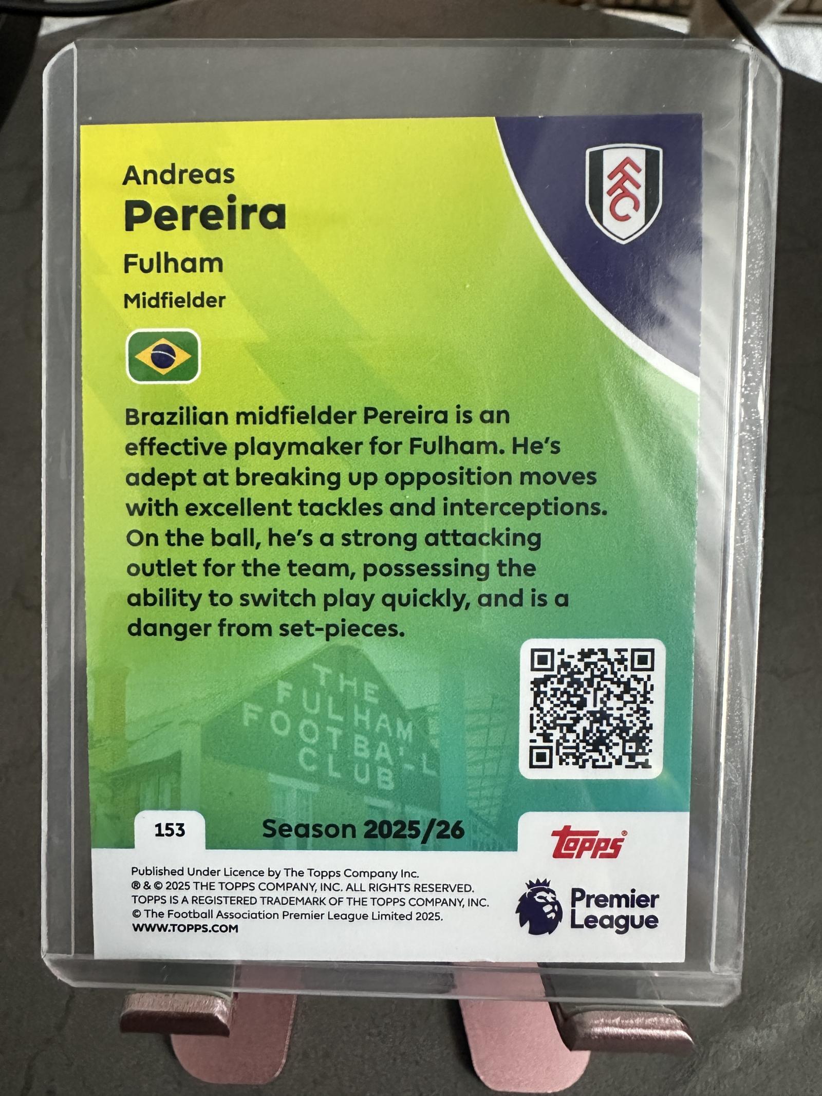 Topps Premier League 2025/26 Andreas Pereira Fulham Midfielder Card #153