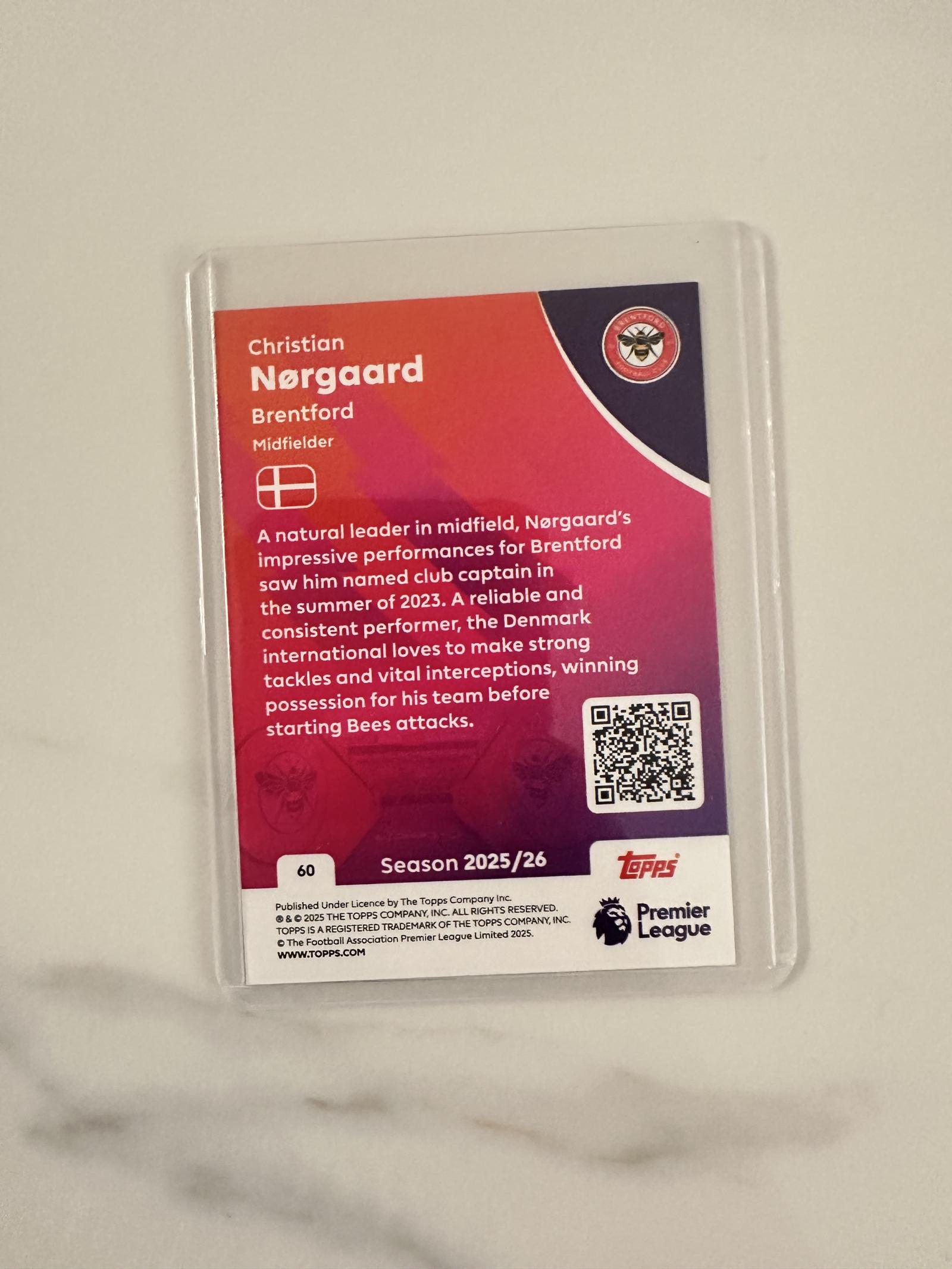 Topps Premier League 2025/26 Christian Nørgaard Brentford Midfielder Card #60