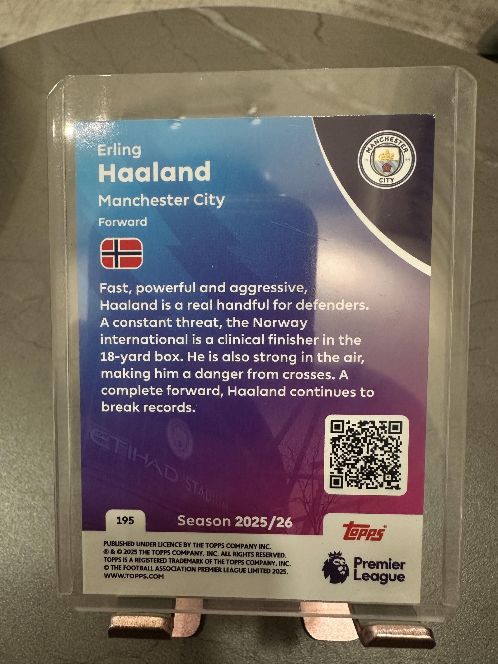 Topps Premier League 2025/26 Erling Haaland Manchester City Trading Card #195