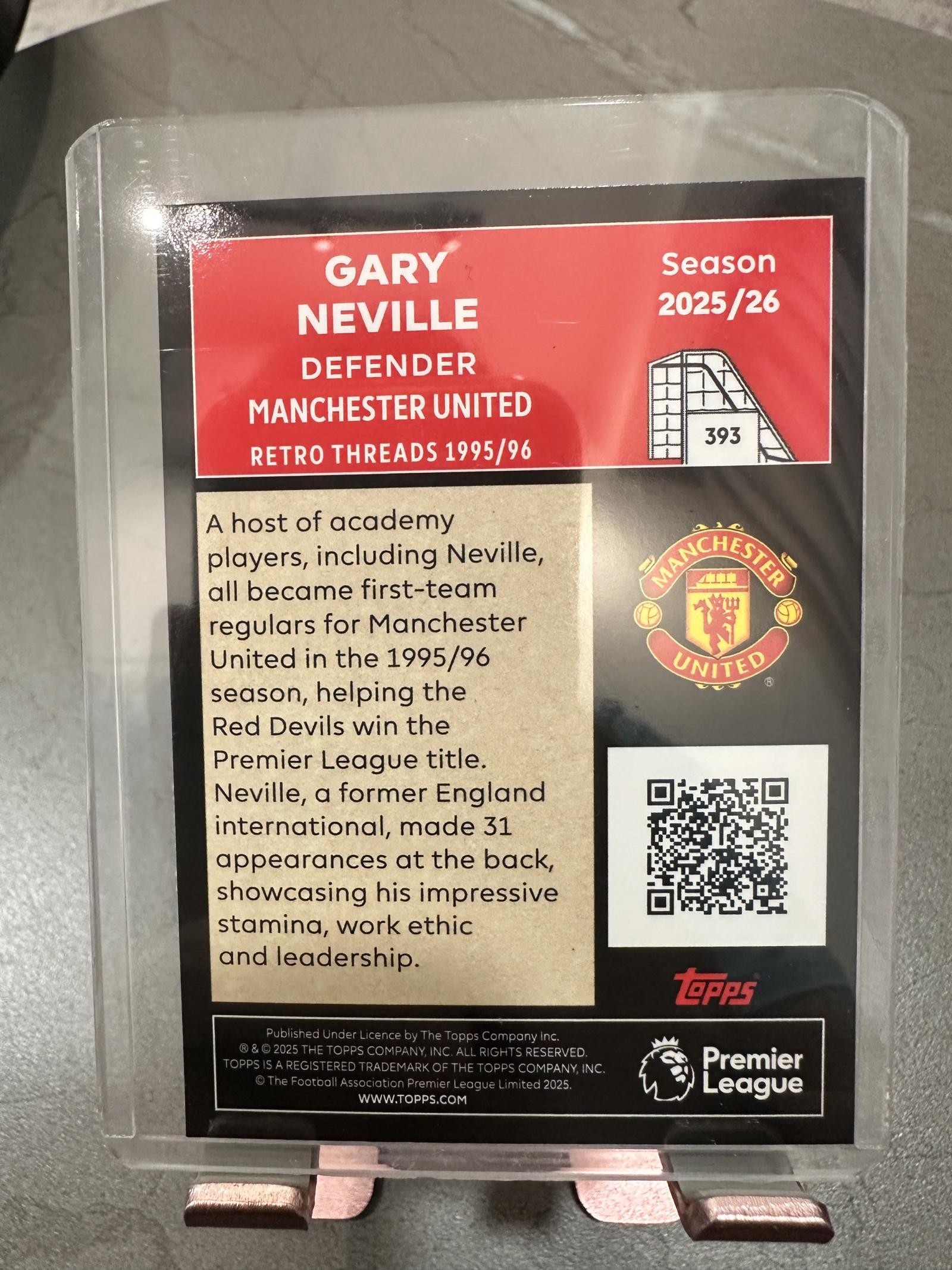 Topps Retro Threads 1995/96 Gary Neville Manchester United Premier League Card