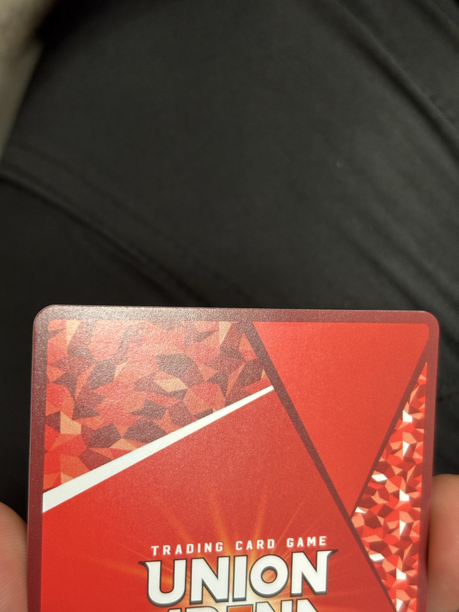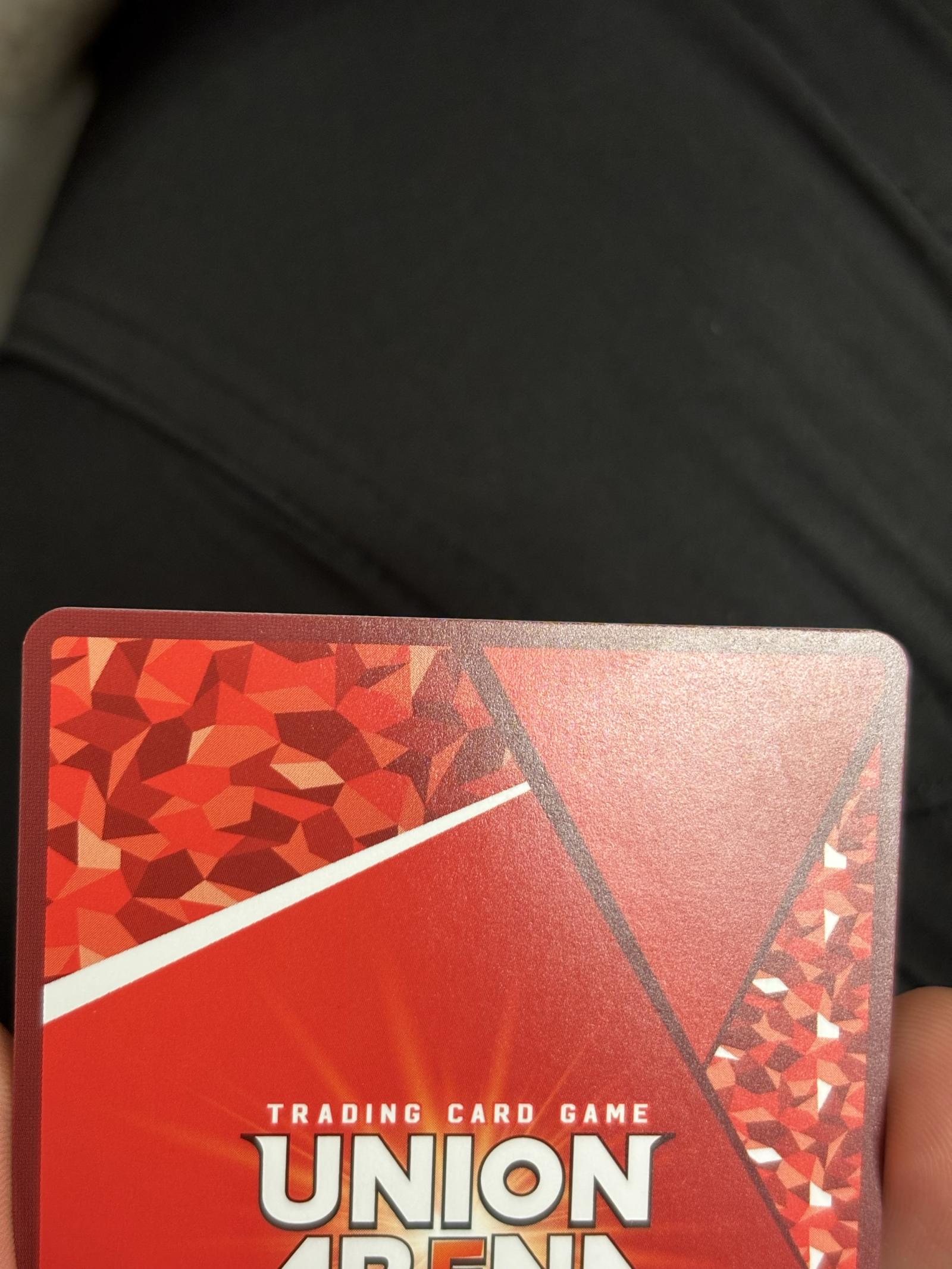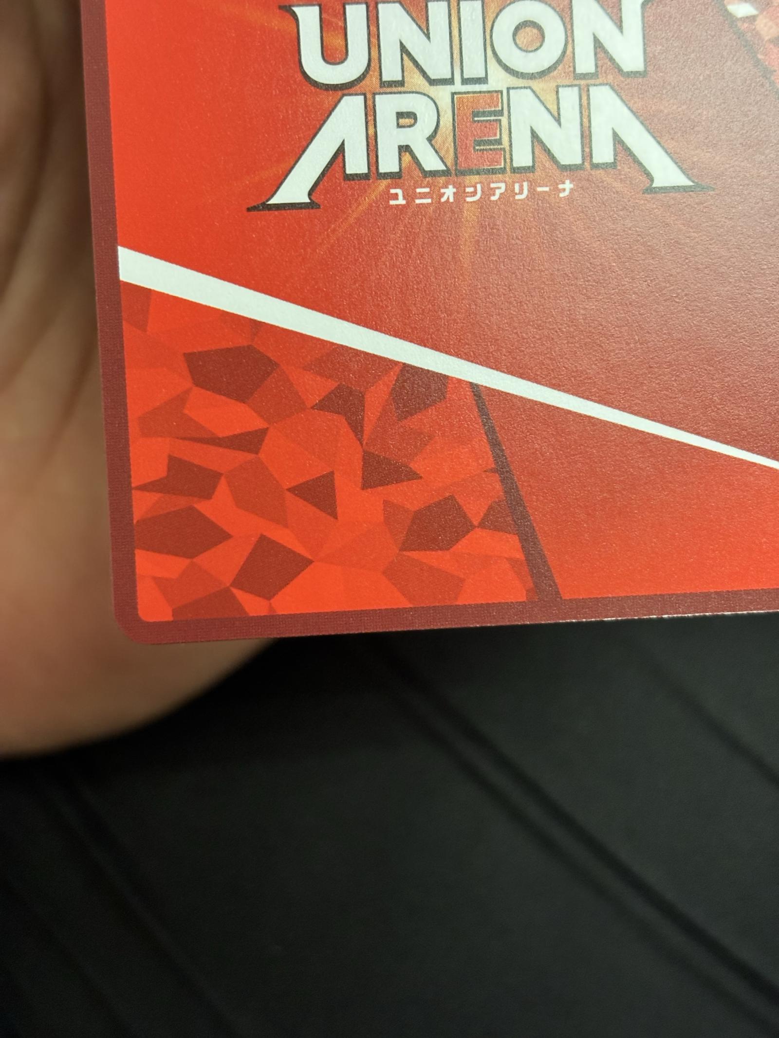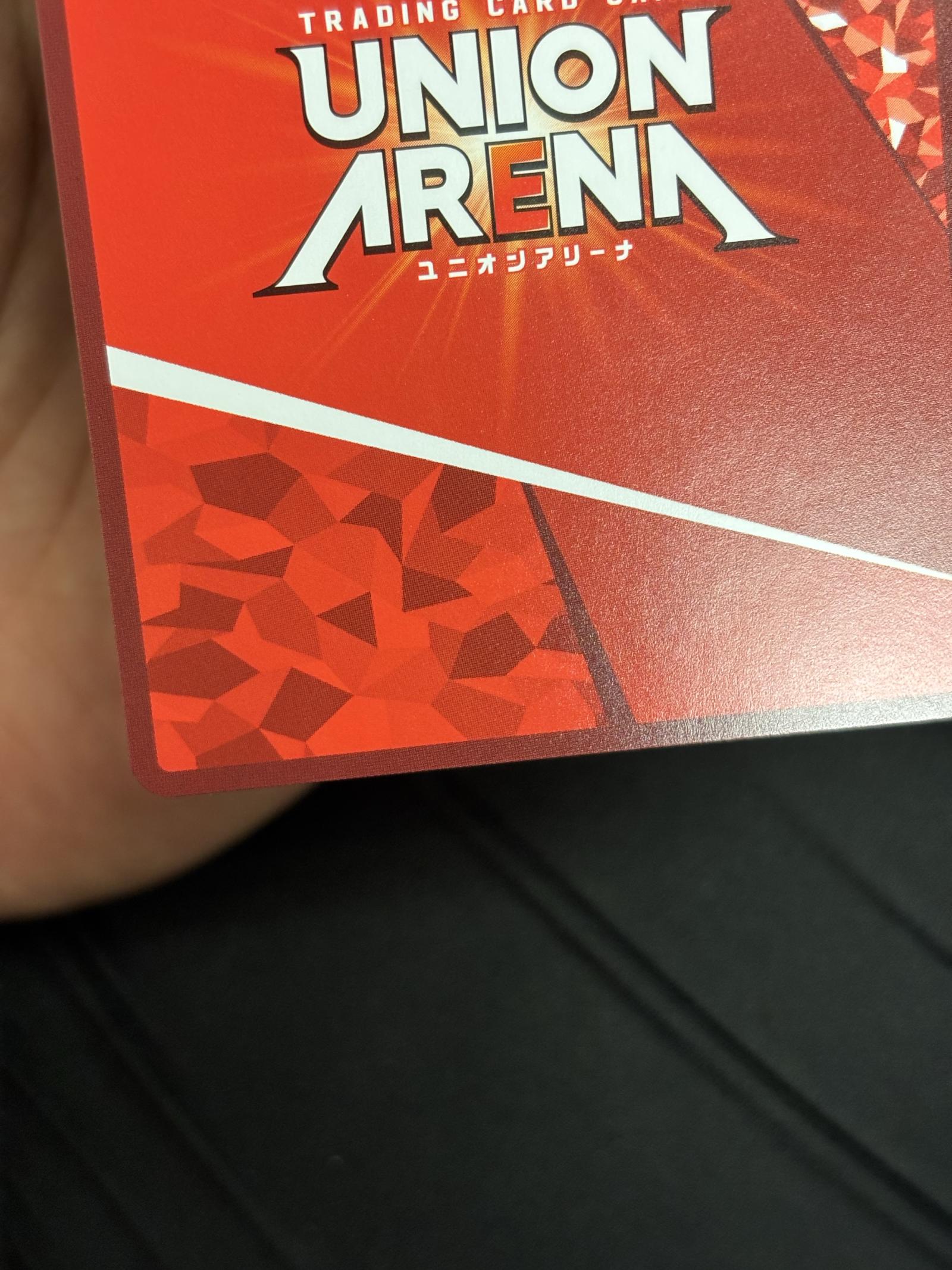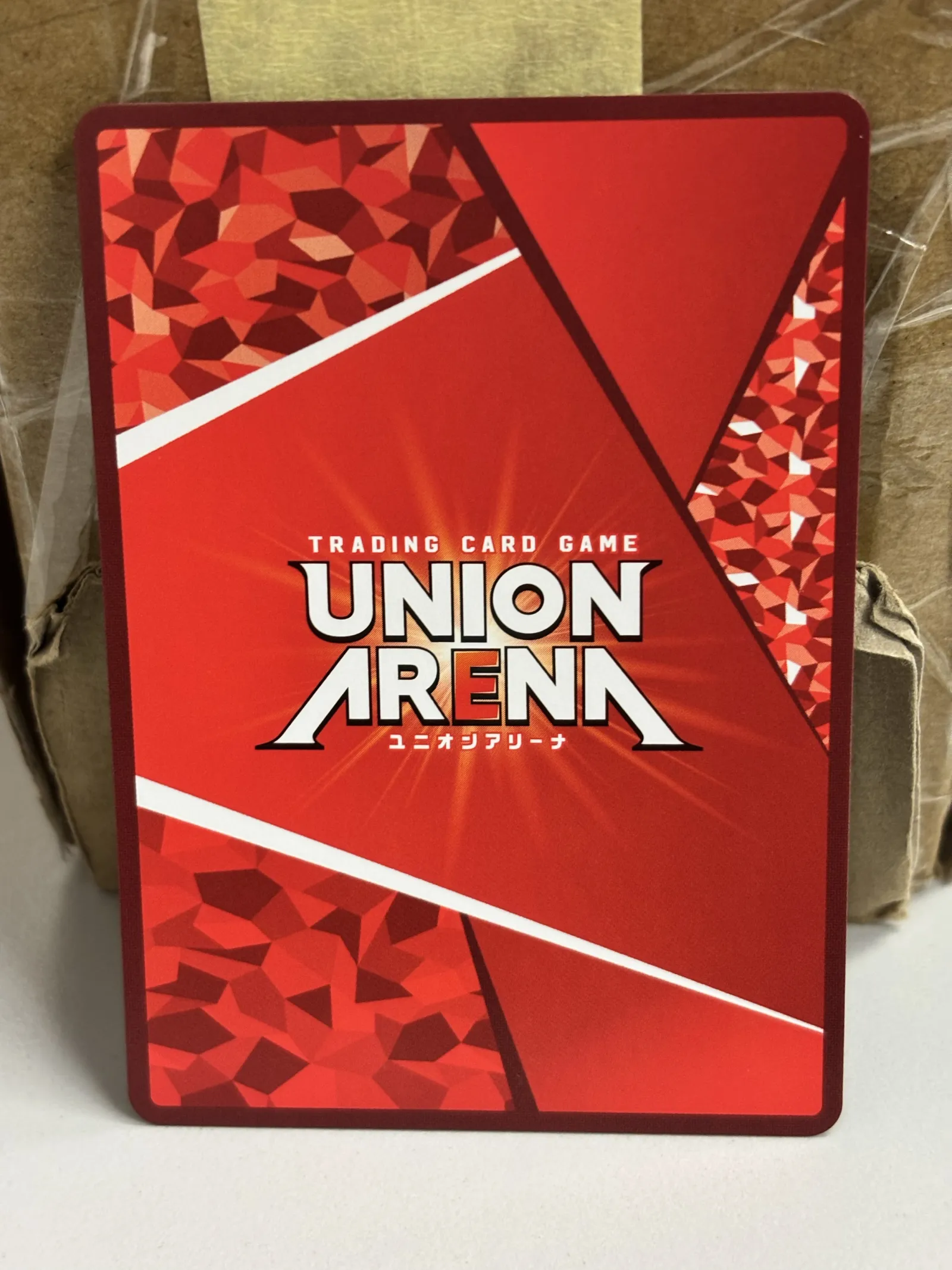 Other observations: Clear photo of the front and back are included — back shows the official Union Arena design with no major printing anomalies. Card edges and corners photographed look clean for a near‑mint card; any very minor surface wear would be consistent with handling and is reflected in the NM grading.