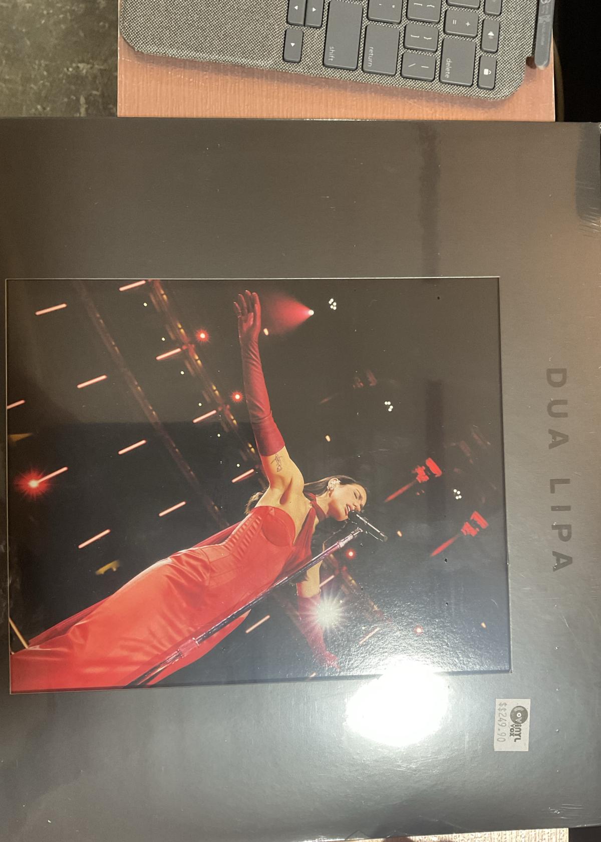 This vinyl record features Dua Lipa, captured during a vibrant live performance. The cover displays Dua Lipa in a red gown on stage, providing a striking visual for collectors and fans. Suitable for any music collection, this item appears to be a high-quality release.