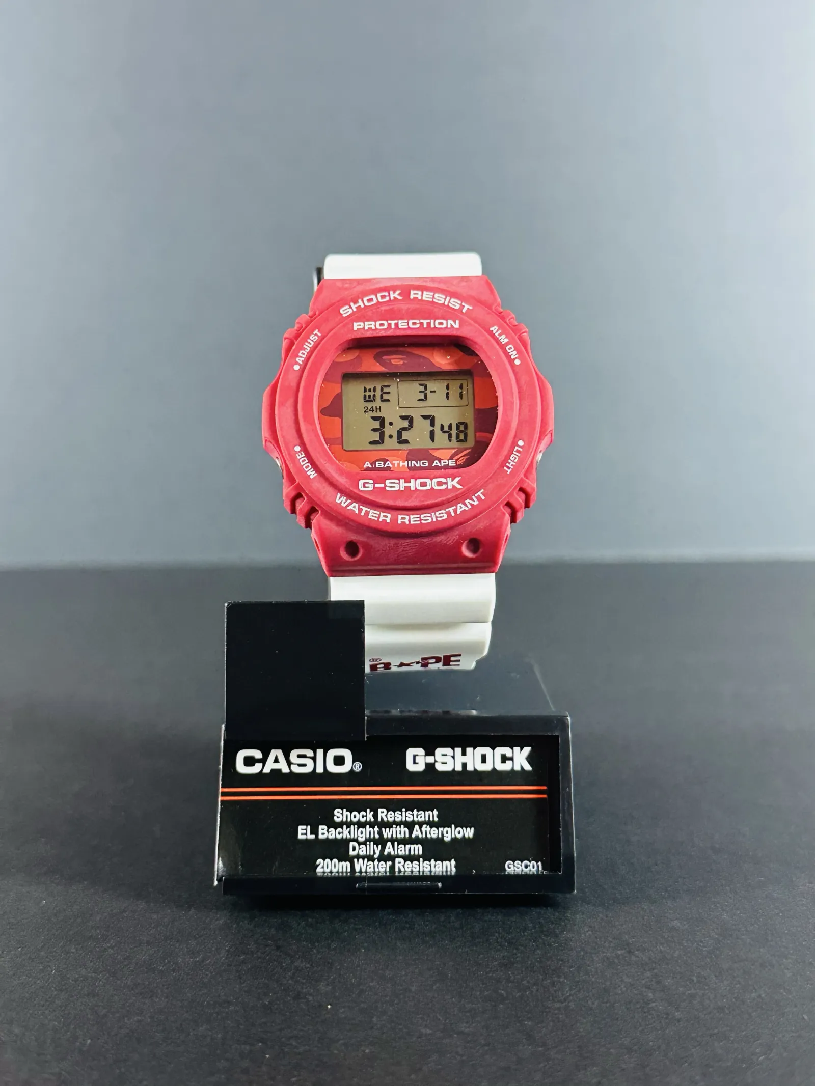 SPECIFICATIONS : MODEL : DW-5750 COLOR : Red / White DESIGN : BAPE BAPESTA 20th Anniversary Collaboration ORIGINS : Made In China