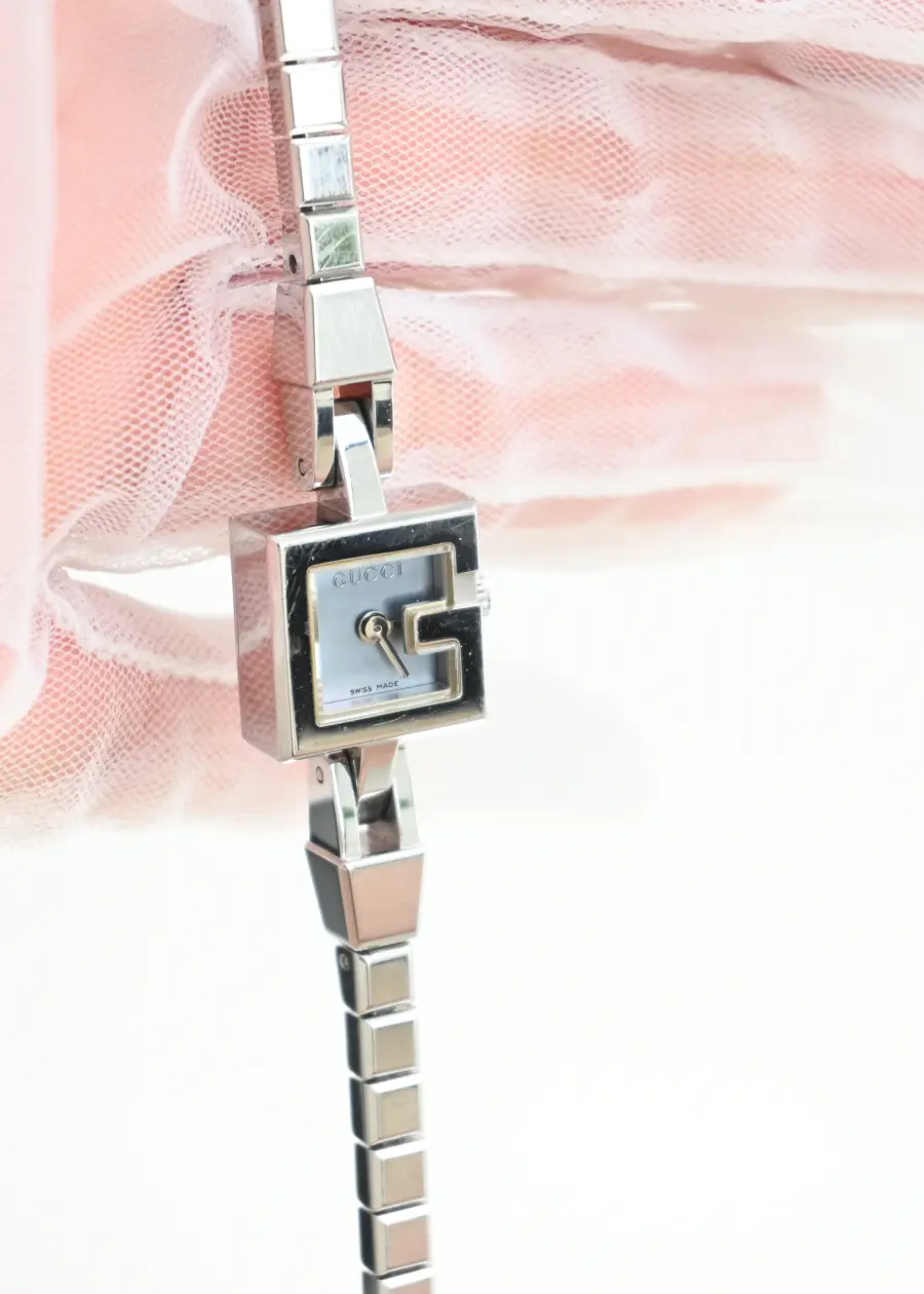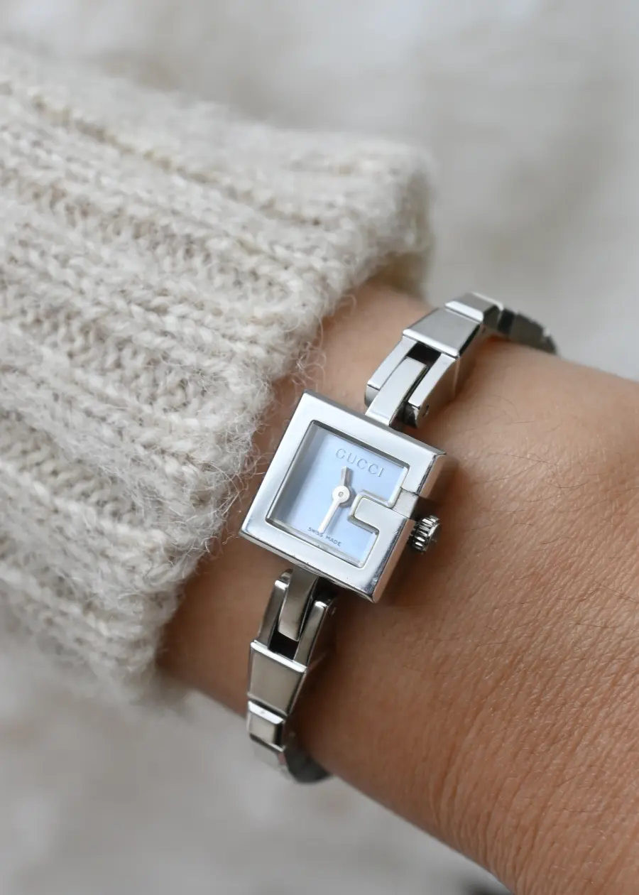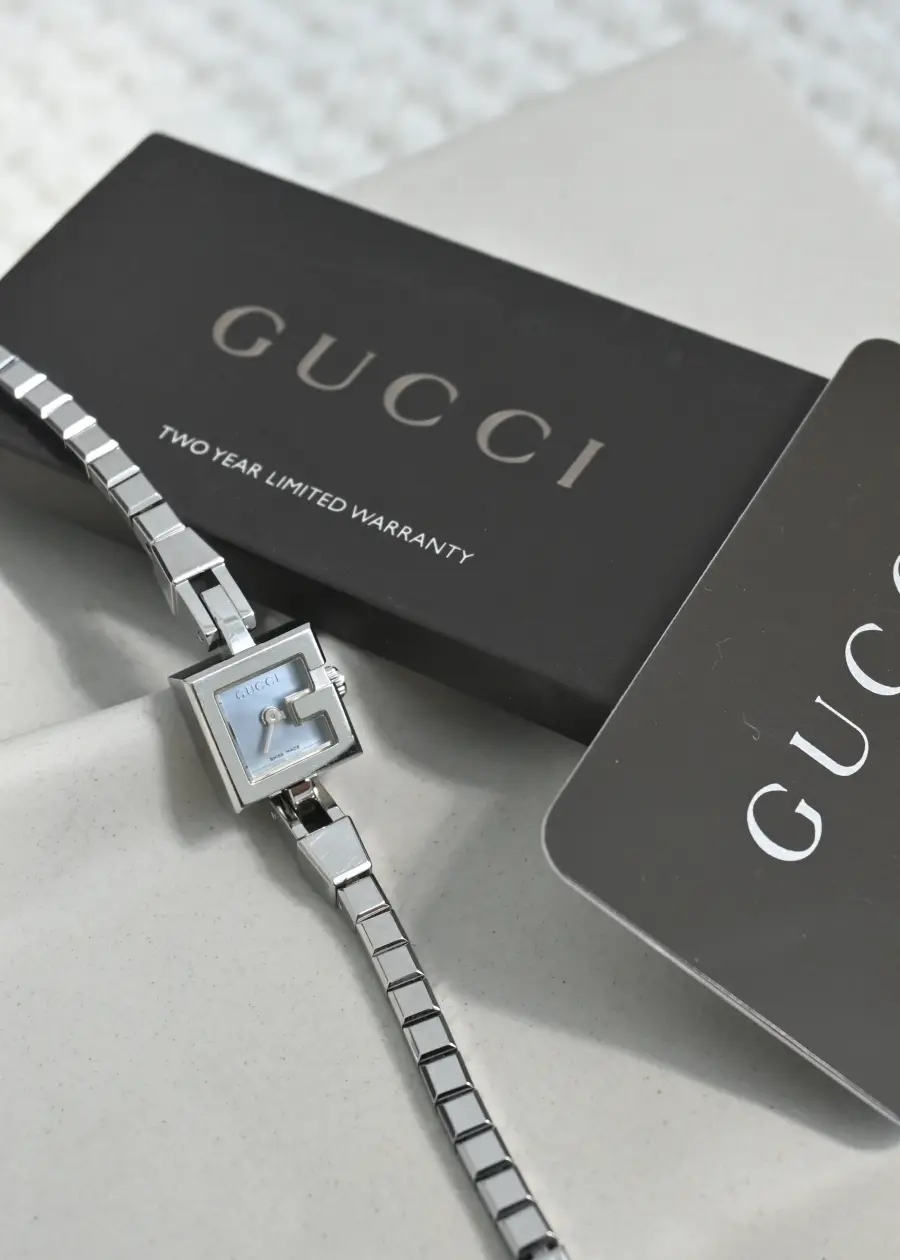 A timeless Mini G watch from 2006. Its light blue mother-of-pearl dial, reminiscent of a serene ocean, exudes a classic charm.
