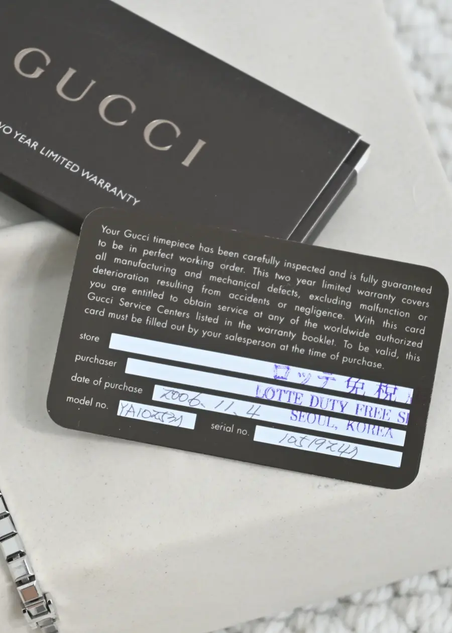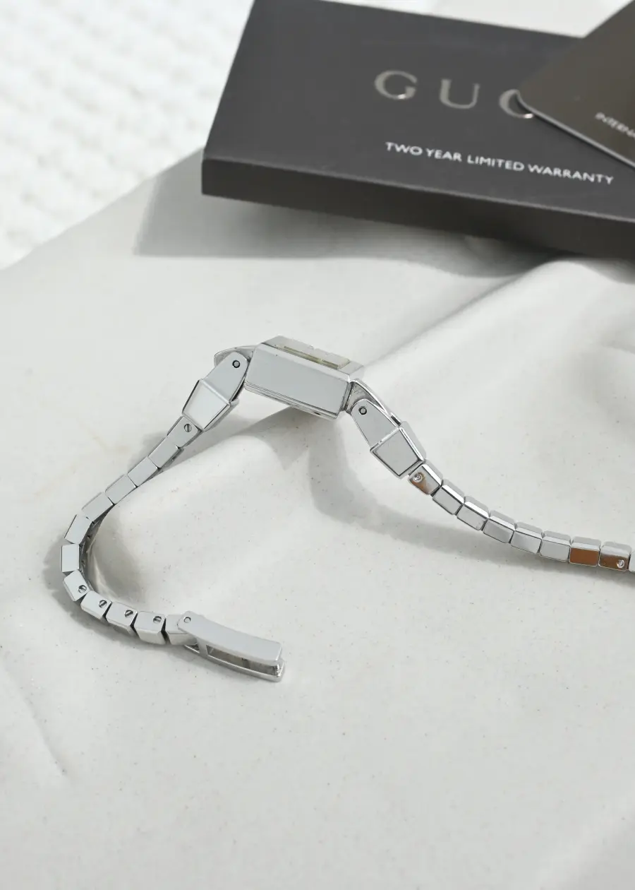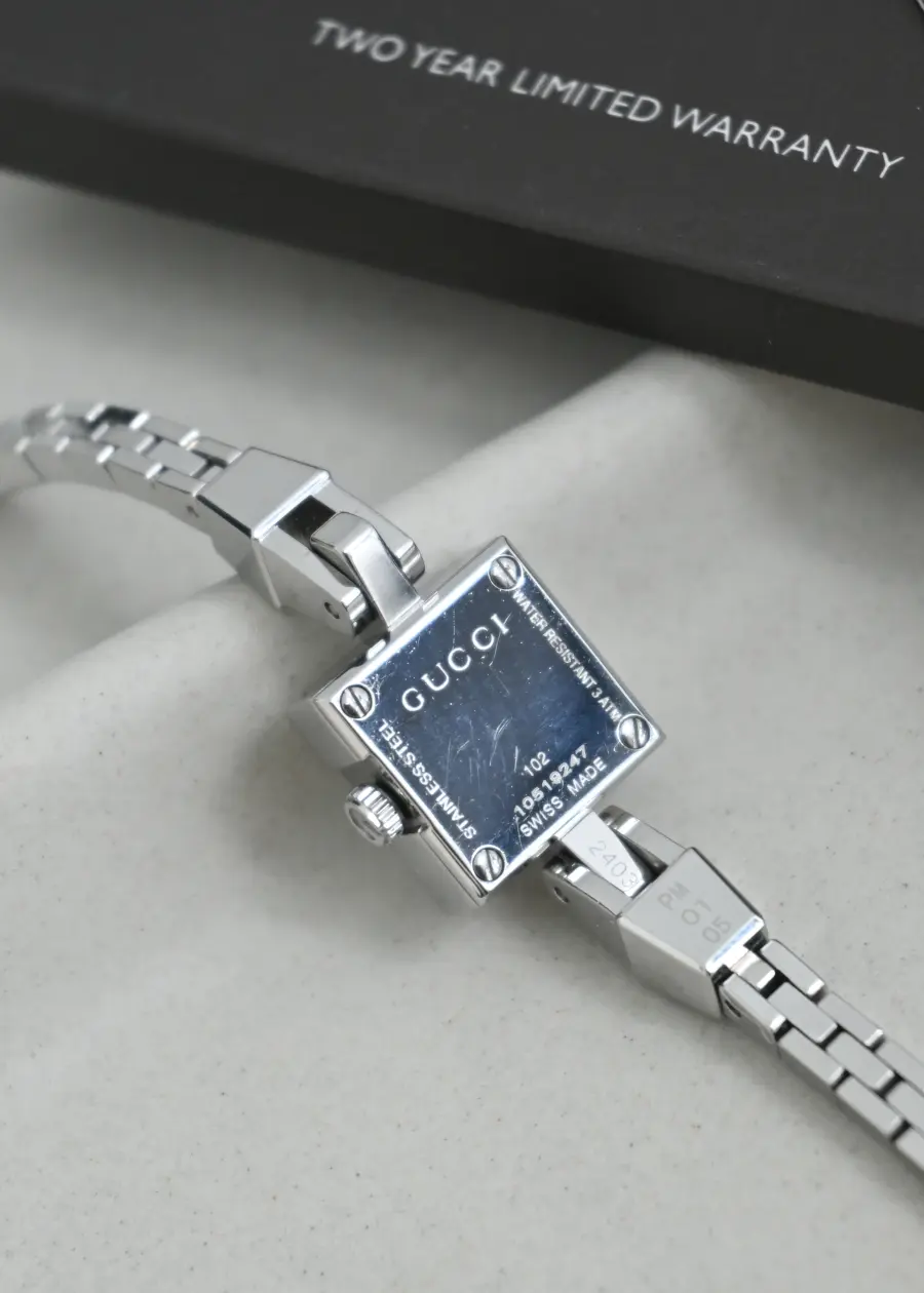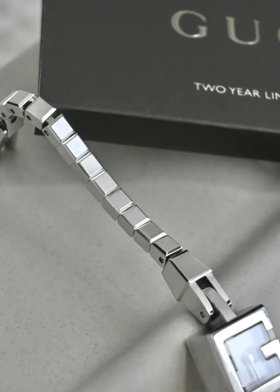 A timeless Mini G watch from 2006. Its light blue mother-of-pearl dial, reminiscent of a serene ocean, exudes a classic charm.