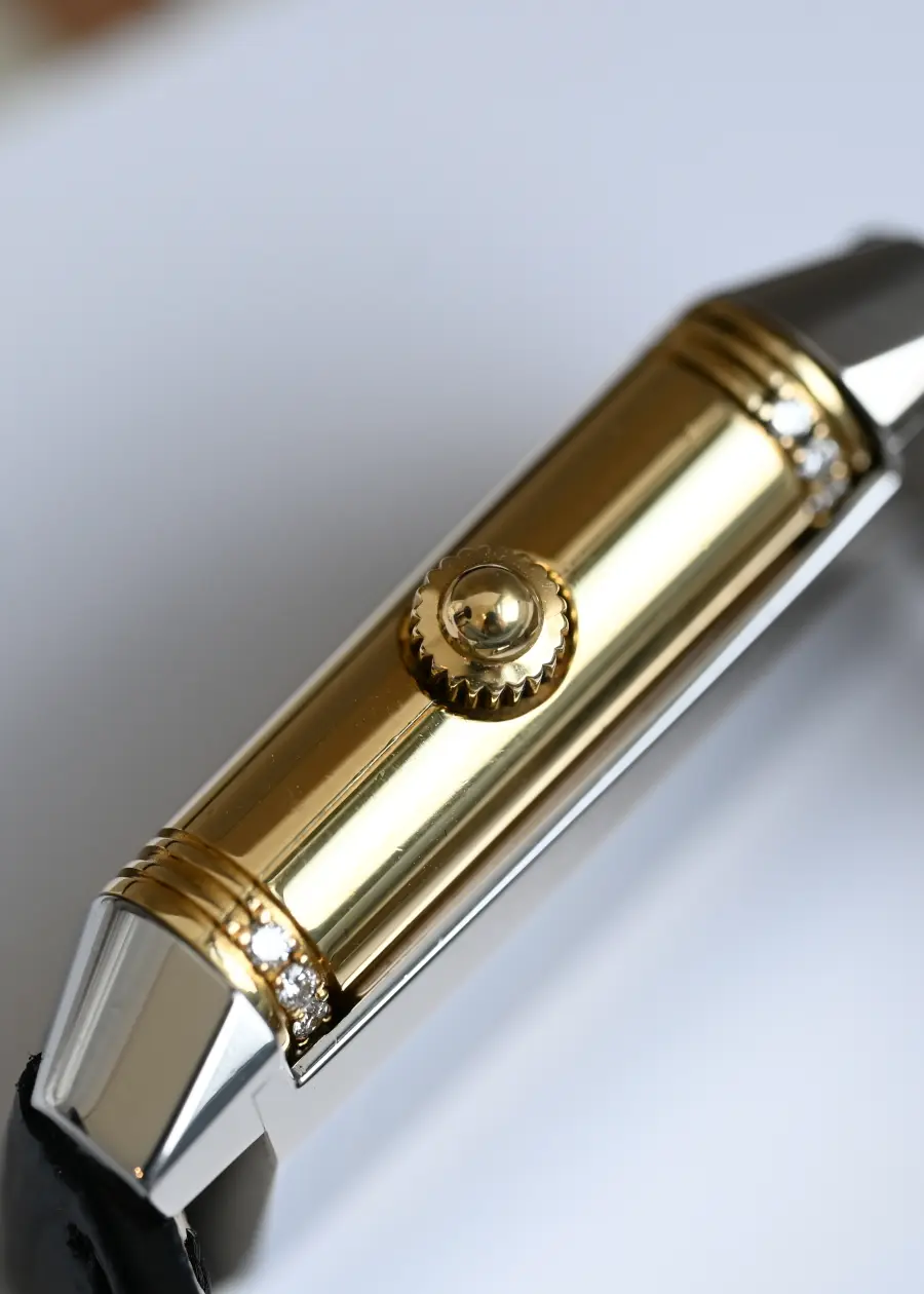 • Movement : Manual Winding • Dial : White • Material : 18K YG, Stainless Steel • Inclusions: Genuine Buckle, Strap, Card and Box • Serial : 242922 • Measurement : L20 x H32 mm • Wrist size : adjustable