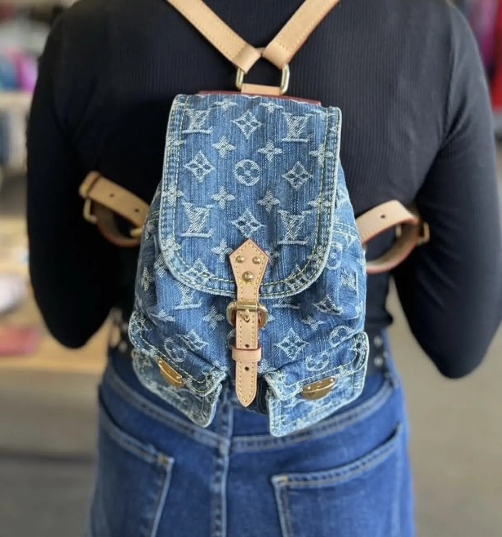 Vintage 2006 LOUIS VUITTON BLUE DENIM MONOGRAM PM BACKPACK Authentic Brand new comes with dust bag only