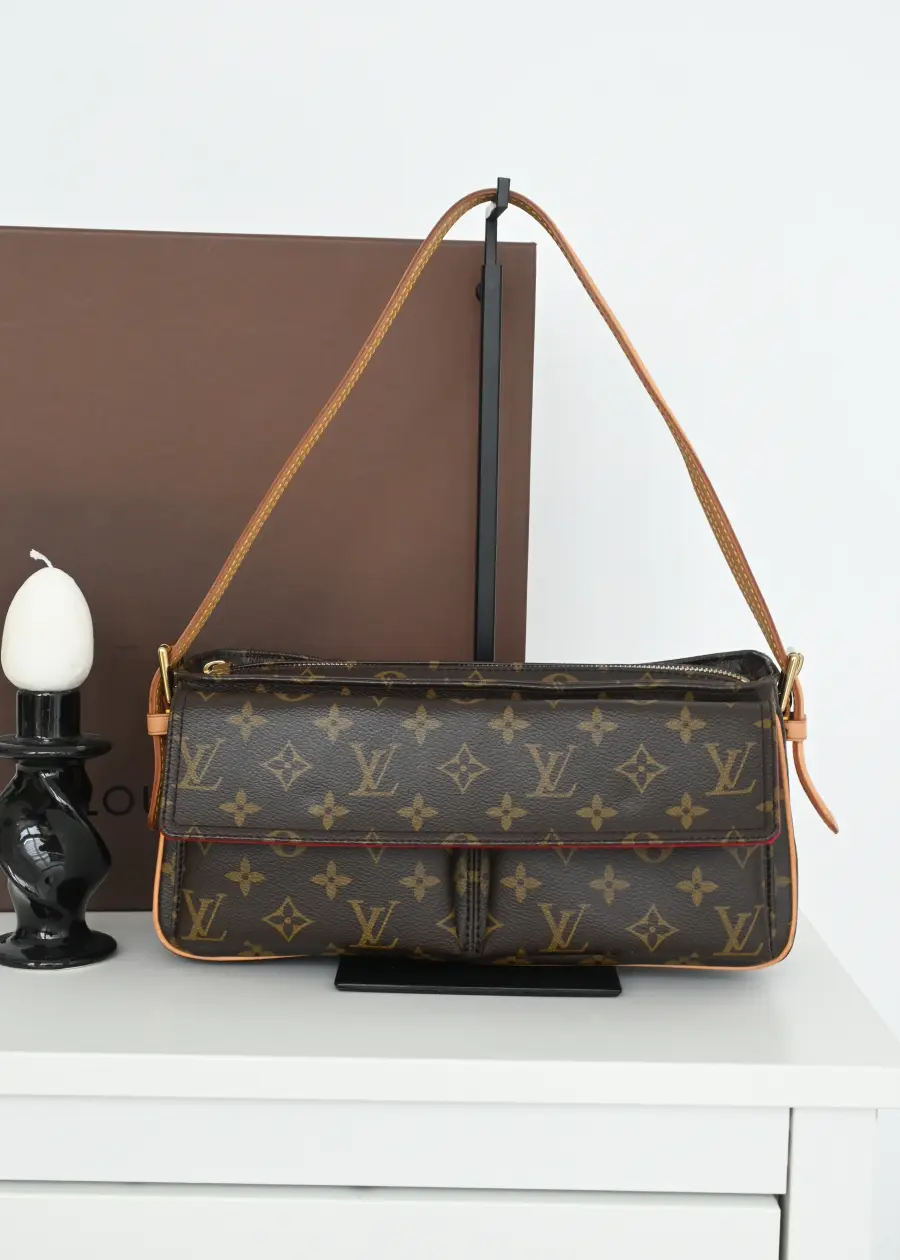 A bold nod to early-2000s Parisian charm — the Viva-Cité MM Vintage captures Louis Vuitton’s iconic Monogram with a playful architectural twist. Boxy yet refined, its dual front pockets and structured frame make it a statement of nostalgic utility.