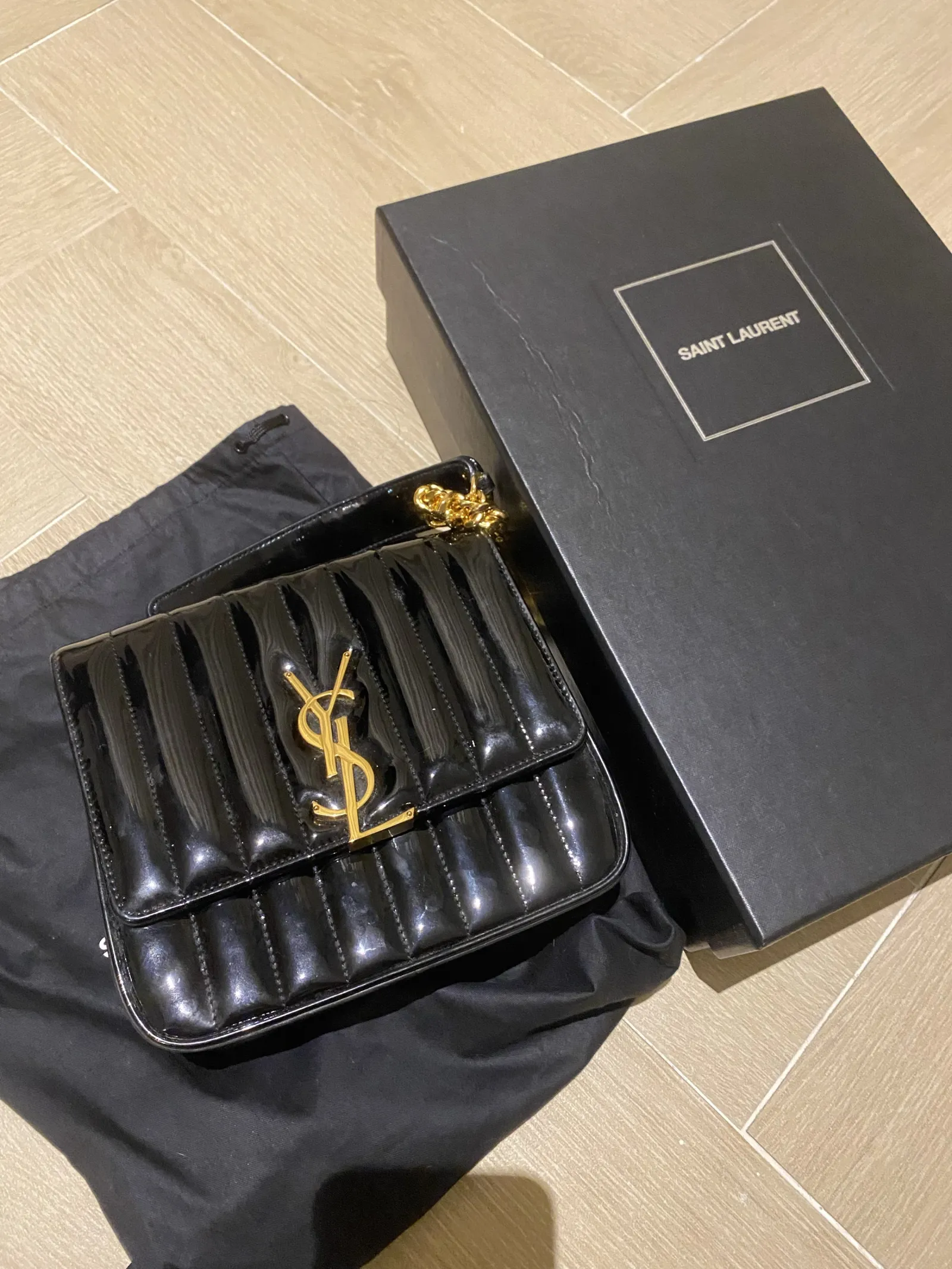 Saint Laurent Black Patent Leather Handbag Gold strap and Ysl logo includes dust bag and box Authentic only ✨ Brand new