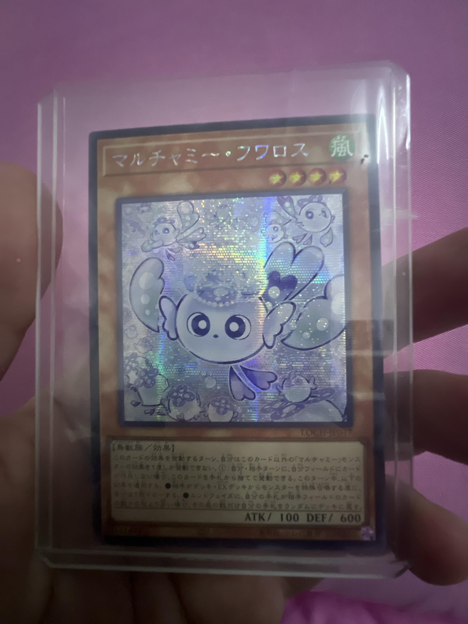 This is a Japanese Yu-Gi-Oh! trading card featuring the monster Mulcharmy Fuwalos SE version. The card displays a shiny holo foil on the artwork and is contained in a protective sleeve. It has 100 ATK and 600 DEF. The card text is in Japanese.